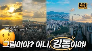 [4K+Drone] 강동구 '단풍' 싹~ 훑었습니다!|하늘에서 바라본 강동의 오늘